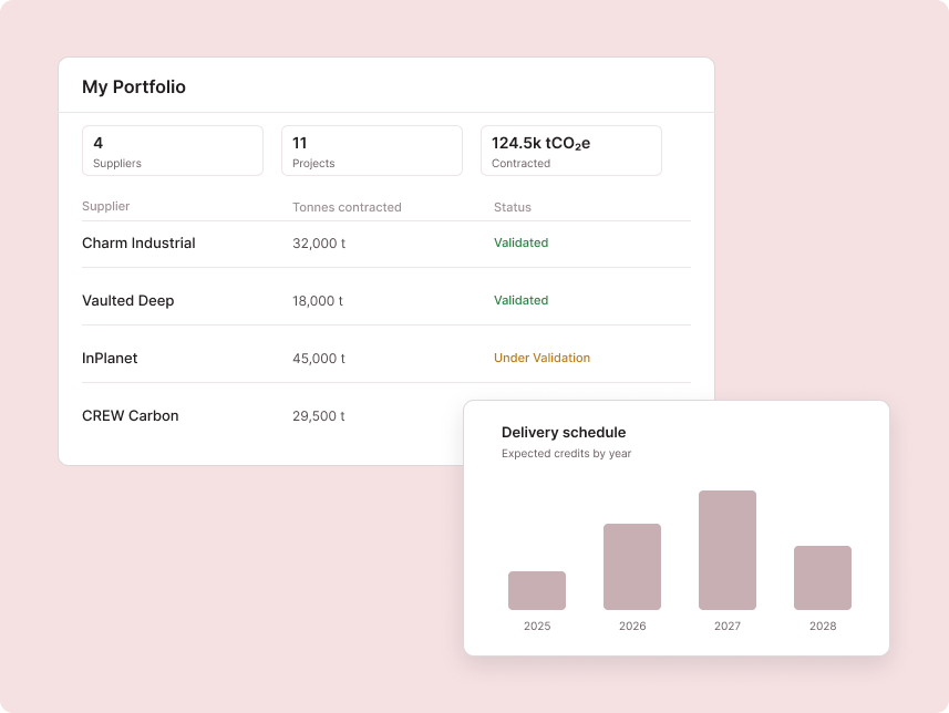Credit deliveries can now be specified with a feedstock. If a buyer has a preference for receiving credits from a specific feedstock, suppliers can select to fulfil orders using credits from that feedstock only. Credits are labelled by feedstock, giving buyers confidence in credit delivery.